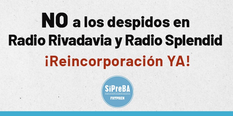 Este miércoles 19/7 se conocieron una serie de despidos en Radio Rivadavia, emisora perteneciente al Grupo Fénix. Desde el SiPreBA inmediatamente nos pusimos a disposición de les compañeres y presentamos una denuncia ante el Ministerio de Trabajo de la Nación por despidos