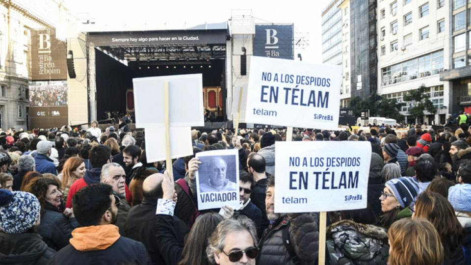 La agencia Télam no emite cables desde el martes 26 de junio. Ese día fue despedida el 40,35 por ciento de la planta de la agencia que tenía, hasta entonces, 27 corresponsalías en las provincias y 6 en el exterior. También era el órgano de control administrativo de la pauta publicitaria oficial.