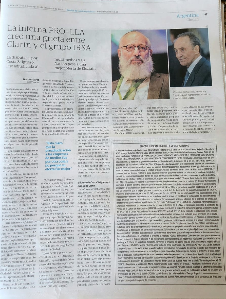 En ese contexto, la jueza establece que se notifique y convoque públicamente a toda persona interesada en sumarse a la demanda colectiva a presentarse dentro de los 5 días hábiles luego de la publicación del edicto en el diario Tiempo Argentino. Por lo tanto, el plazo vence este viernes 19 de diciembre de 2025 y quienes precisen mayor información podrán acceder al expediente correspondiente (EXPTE. 34326/2024) vía internet, ingresando al Sistema de Consultas Web del Poder Judicial de la Nación.