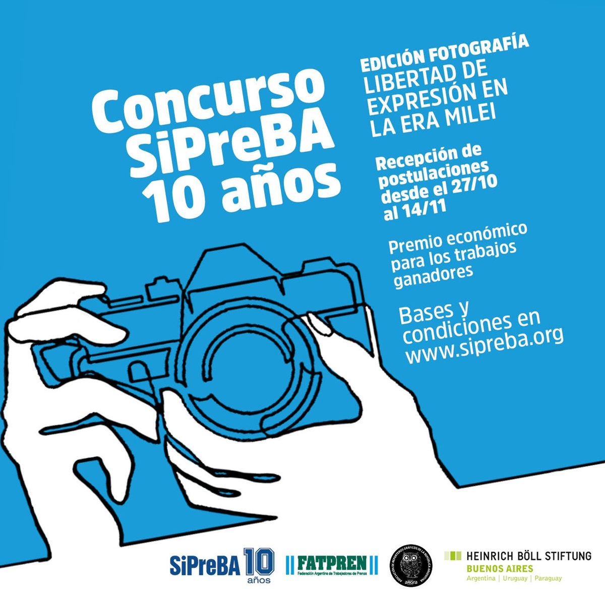 Como parte de las actividades por los diez años del SiPreBA, con las que conmemoramos una década de organización, lucha y construcción colectiva, lanzamos una nueva edición de nuestro concurso de producciones periodísticas. En esta ocasión, la convocatoria invita a reporteros/as gráficos/as a reflexionar sobre el tema: la libertad de expresión en la era Milei. La convocatoria es en conjunto con la Federación Argentina de Trabajadores/as de Prensa (FATPREN), la Asociación de Reporteros Gráficos de la República Argentina (ARGRA) y la Fundación Heinrich Böll, con el propósito de estimular la producción y circulación de contenidos con mirada crítica y honrar el oficio de reportería gráfica, tan atacado en los últimos meses.