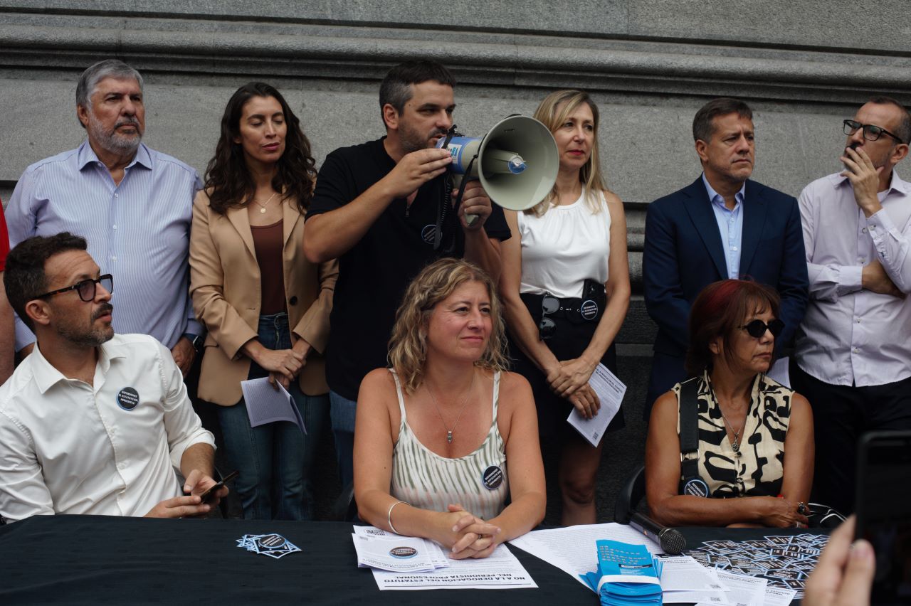 Mariano Obarrio remarcó que “estamos siendo atacados los periodistas” y que la derogación del Estatuto “no es un hecho aislado”, sino que “forma parte de una política de ataque permanente a la libertad de prensa por parte del Presidente”. Claudia Acuña, representante de Periodistas Argentinas, y alertó por el avasallamiento de las voces críticas en los medios y pidió ir por más a “puro abrazo”.