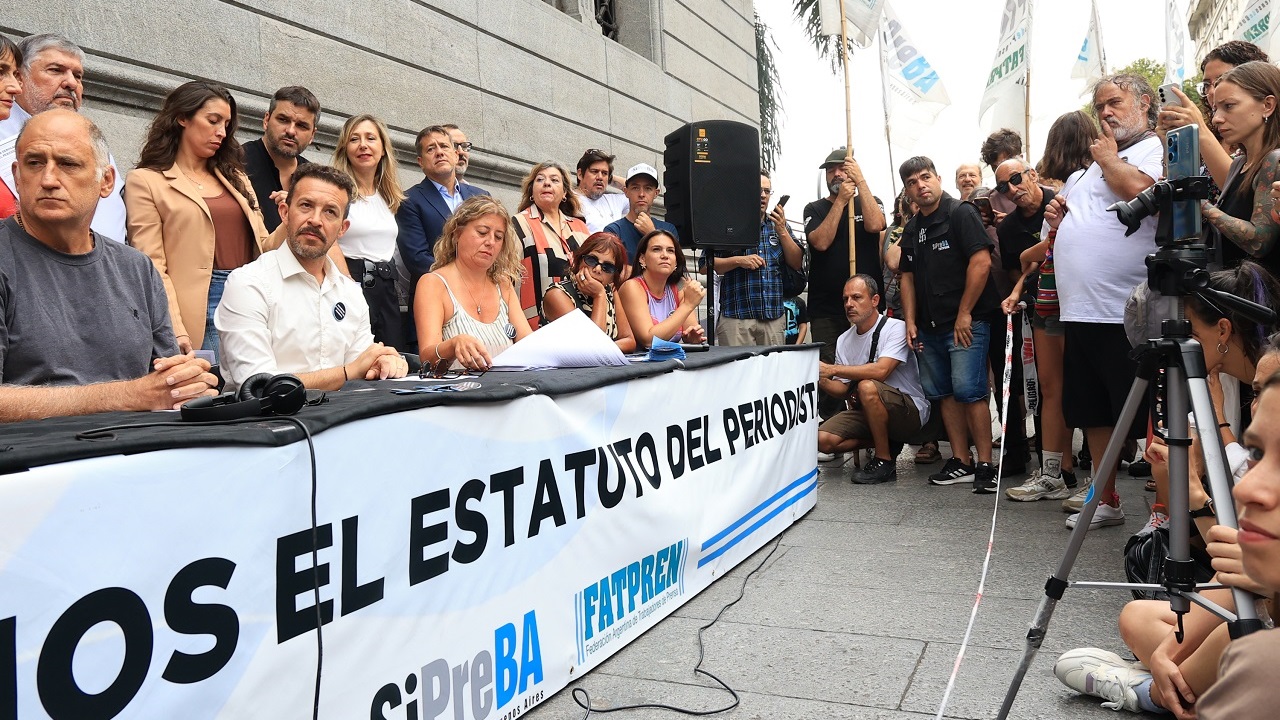 Periodistas de trayectoria, representantes de 23 sindicatos de prensa del país y legisladores nacionales de distintos bloques opositores rechazamos este miércoles la derogación del Estatuto del Periodista Profesional y del Estatuto del Empleado Administrativo de Empresas Periodísticas, incluidos en el proyecto de reforma laboral impulsado por el Gobierno nacional.